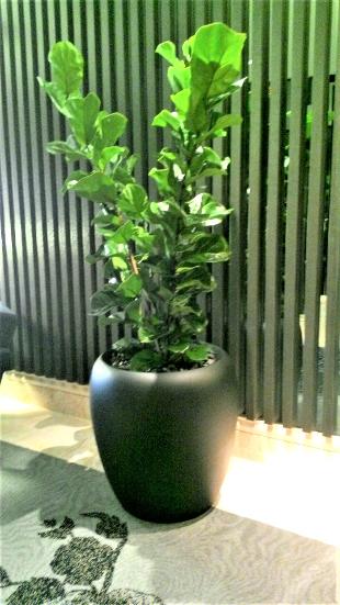 FICUS BAMBINO IN BLACK URN TOPPED WITH BLACK PEBBLES