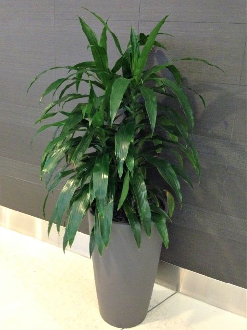 DRACAENA JANET CRAIG IN GREY FIBRE CLAY CONE TOPPED WITH BLACK PEBBLES